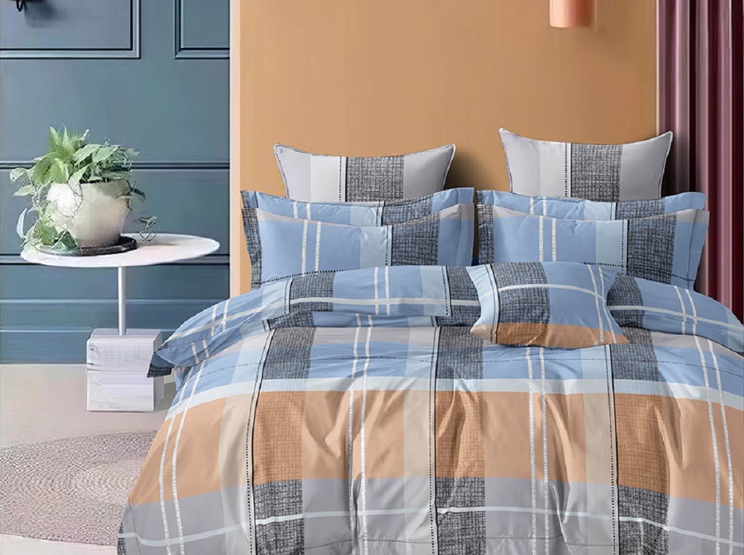 2-х с евро простыней на резинке - Пододеяльник 215х180 см (±2 см) 1 шт; Простыня 240х215 см (±3 см) на резинке 1 шт; Наволочка 70х70 см (±1 см) 2 шт;